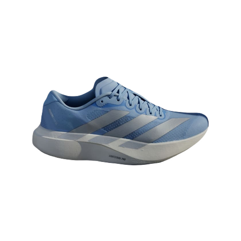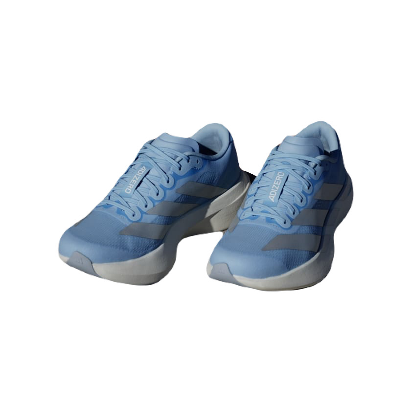 the Adidas Women’s Adizero Evo SL – Glow Blue / Silver Metallic / FTW White: